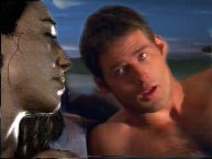 He recalled an incident on the first day of his stay here. Pan'tio, the clan-chief of the Shaa-rii, had welcomed him and without further ado presented one of his daughters as his procreational partner. As much sex-starved as this human might have been, John had declined, telling him he had a permanent mate back on Moya. When more females had offered their services during the last few days, he had exaggerated his tale, telling one and all about his wife, the radiant Aeryn Sun. Crichton grinned and sat down on the beach. He recalled the events that had brought him here. John was grateful that Zhaan had intervened when he had told his crewmates that he was taking a trip down to the planet, alone in his module. D'Argo and Aeryn had been adamantly refusing it, but Zhaan had told them they were staying for at least a weeken to replenish their much needed supplies. Digging his bare toes into the soft sun-kissed sand, Crichton laid back and closed his eyes. The woman stood in the shadows of the trees that bordered the small beach around the lake. She had been watching Crichton for quite some time now. Not sure what to do ... she had a squeasy feeling in her stomach, something John would refer to as rattlers. She shivered even though it was quite warm, almost too warm for her liking. Zhaan had been against her taking the prowler down to Shariinye but still she had to make sure John was all right. She wanted to confirm that John Crichton, human, partner, friend ... and perhaps more, was safe and not haunted by the vision of his nemesis, Scorpius. She moved slightly when John walked out of her sight and she crept closer to his module. A twig snapped beneath her boot and she cursed under her breath. She had never intended to come this close, had told herself that she just wanted to take a short glimpse of him to make sure he was well, but now she felt drawn to him. She could not take her eyes off him. Aeryn sighed softly, when she watched him lying down and then she slowly turned. He is well, she thought and for a moment a warm feeling of gratefulness and relief washed over her. She slowly crept further away, circling him and was trying to make her way back to the prowler. She had almost reached it when she saw Zhaan standing beside it, with D'Argo, Chiana and Rygel close by. "Aeryn, did you find John?" The Delvian asked with a smile, and Aeryn's face became the typical Peacekeeper mask again. "So now we have all the pods down here?" she asked in a cold voice, ignoring Zhaan's question. D'Argo stepped closer to her prowler. "No, I picked her up as the clan-chief of the Shaa-rii invited us all for a feast tonight." As an afterthought he added, "You are invited too, Aeryn." Aeryn snorted and walked over to her prowler, brushing past D'Argo. She was about to climb into the cockpit when natives arrived on the clearing, amongst them John, deeply in conversation with someone who was obviously the clan chief.